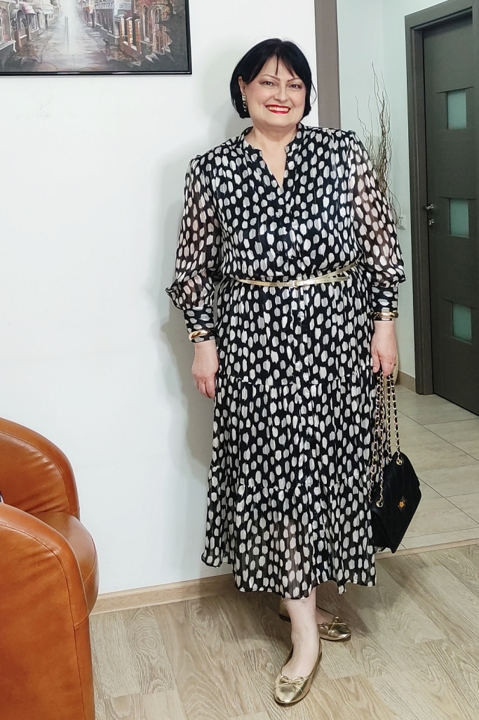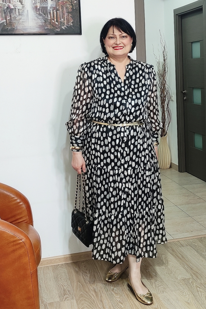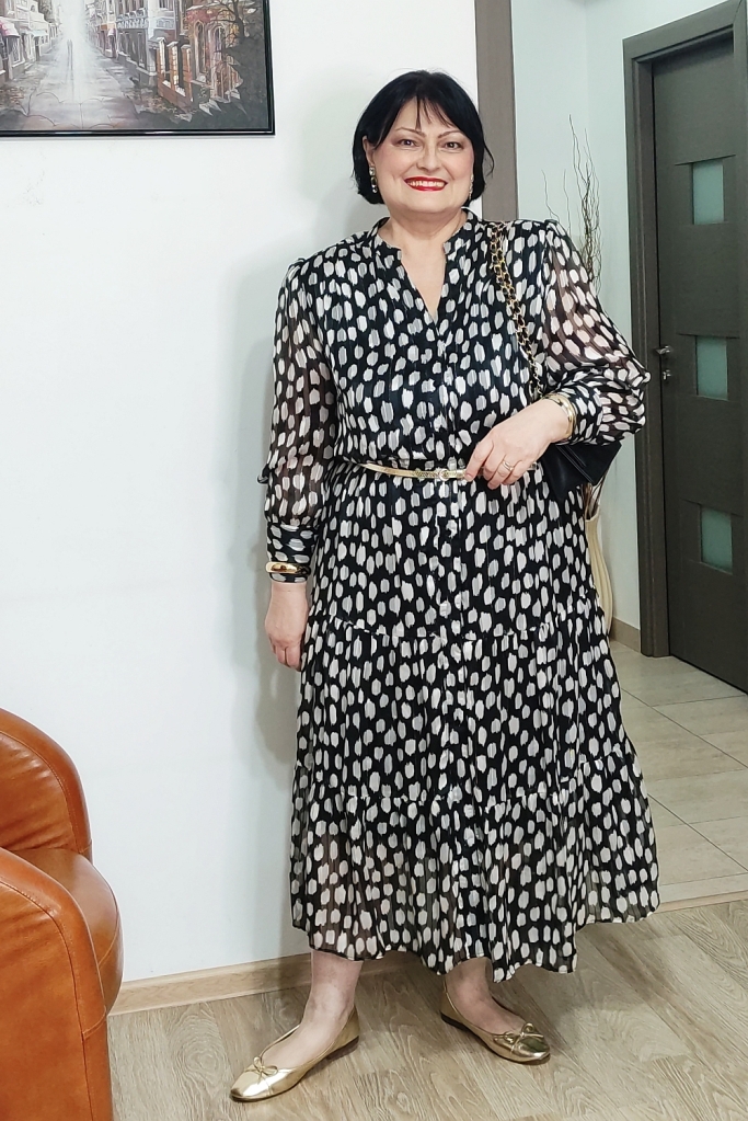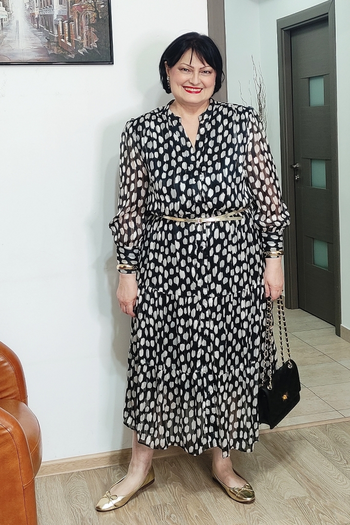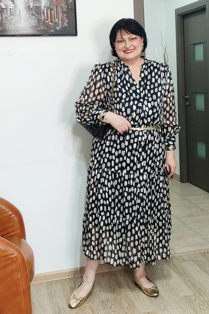 Rochia pe care o port în ţinutele de azi este în garderoba mea de vreo doi ani, am cumpărat-o în preajma primăverii, ca s-o îmbrac de 8 Martie.