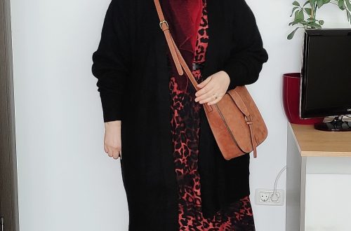 Rămăn ca accesorii cerceii, cureaua, geanta şi pantofii. Cu ele am creat două ţinute cu aer diferit, una cu accesorii negre, mai elegantă, cealaltă de zi, cu accesorii deschise la culoare.