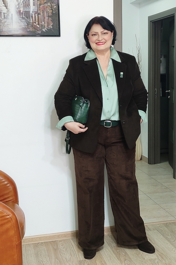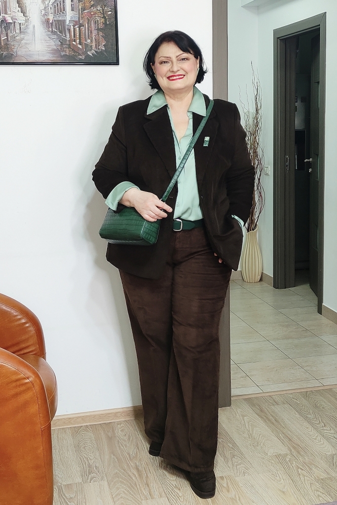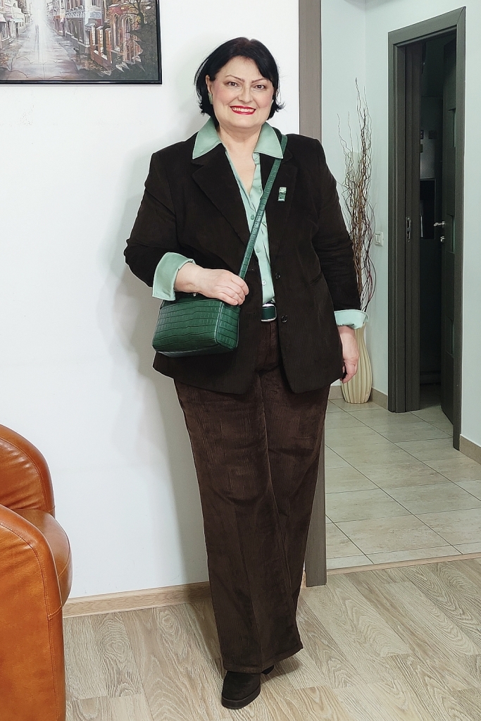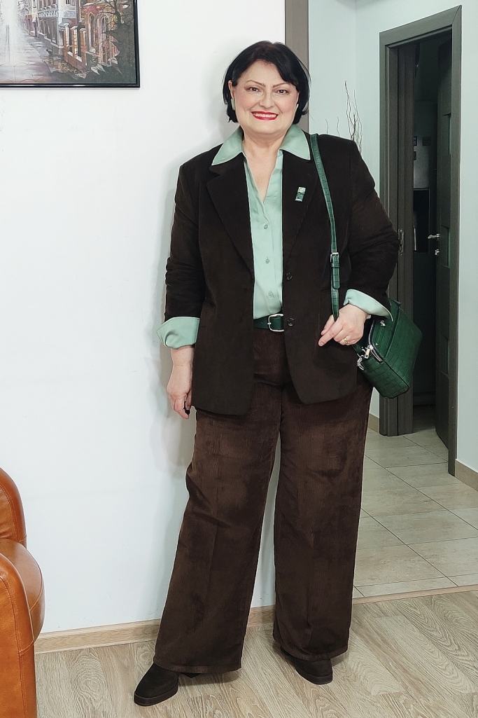 Verdele aduce prospețime și lumină, în timp ce maroul ancorează, oferă stabilitate și profunzime. Împreună, creează o combinație calmă, potrivită pentru un context profesional, dar suficient de expresivă încât să nu treacă neobservată.