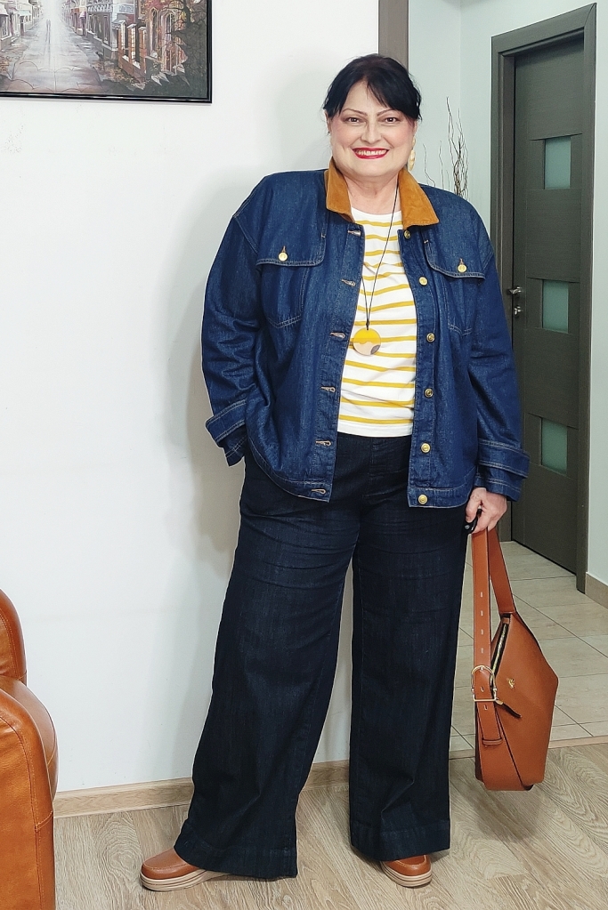 Jacheta de blugi este una dintre piesele esenţiale ale garderobei mele. Deşi am început s-o port târziu, după 50 de ani, m-am îndrăgostit de felul cum transformă instantaneu orice ţinută şi îi conferă o notă tinerească şi rebelă. Aşa că mi-am cumpărat, de-a lungul timpului, mai multe modele şi nuanţe de jachete denim.